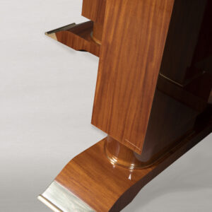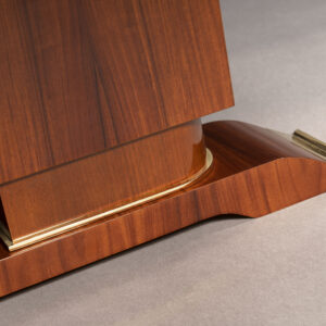 As shown: Sleek and stylish design in a book-matched rosewood veneer with patinated bronze mounts and trim in a high gloss closed pore finish.