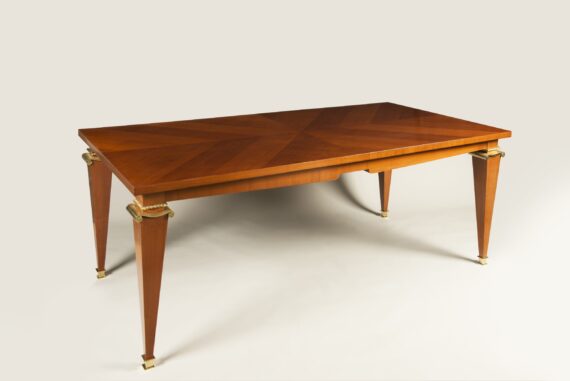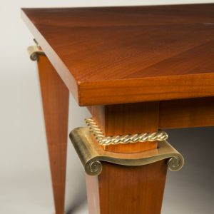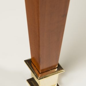 Cherry veneer with brass detailing and sabots.  Extends to 112″