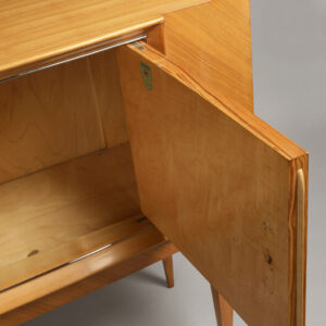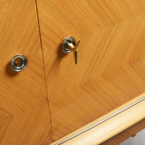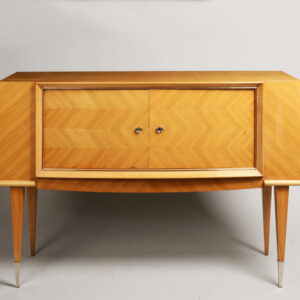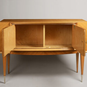 Palisander veneer with brass sabot and detailing with honey onyx top.