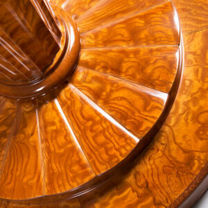 Fluted Doric column with scalloped base in vivid Hungarian ash with mahogany detailing.